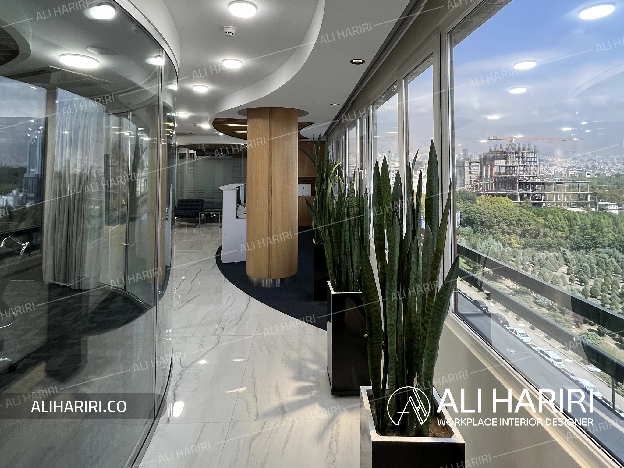 طراحی داخلی شرکت سرمایهگذاری گلگهر بر پایهی خلق فضایی کارآمد، رسمی و در عین حال گرم شکل گرفت؛ فضایی که بتواند هویت قدرتمند و اعتبار سازمانی مجموعه را به شکلی مدرن و ماندگار بازتاب دهد. فرایند طراحی از ابتدا بر خطوط نرم، فرُمهای قوسی و انتخاب متریالهای اصیل متمرکز بود تا ترکیبی سازگار با منظره چشمگیر پروژه به وجود آید.